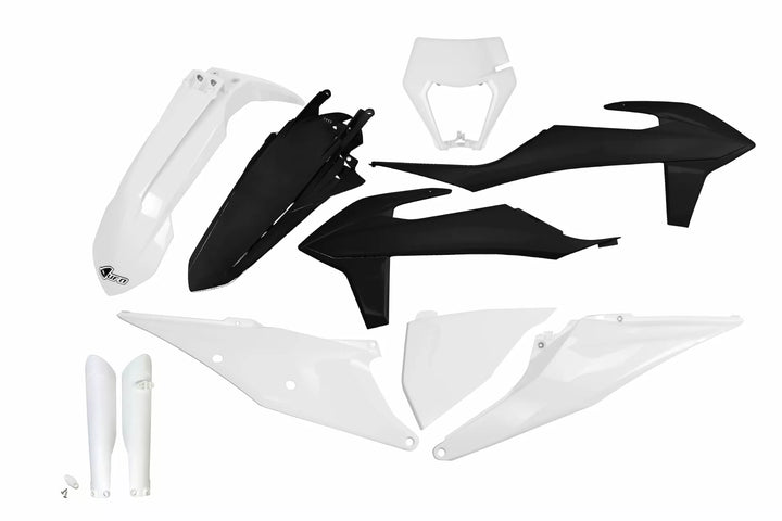 Replace all your plastic at once, OEM matches stock bike colors; all black, all white and other colors also available, Molded-in colored parts wonメt show a different color when scratched, Predrilled pieces mount easily to stock, Complete body kits include front and rear fender, radiator cover, side panels and front number plate