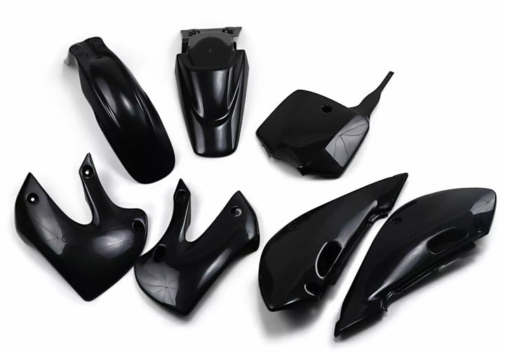 Pre-drilled pieces mount easily to stock locations, Body kit includes front and rear fender, radiator covers, side panels and front number plate; OEM matches stock bike color, Easy bolt-on installation