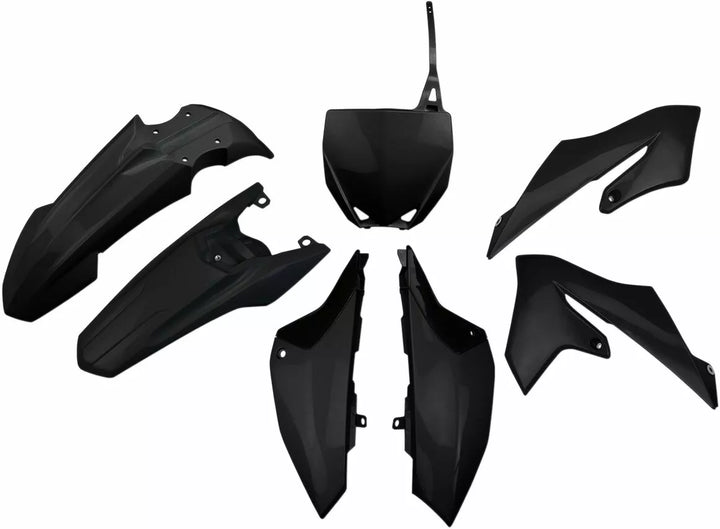 Pre-drilled pieces mount easily to stock locations, Body kit includes front and rear fender, radiator covers, side panels and front number plate; OEM matches stock bike color, Easy bolt-on installation