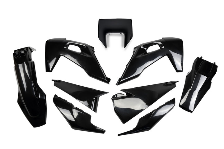 UFO plastics are renowned for their quality and their resistance to off-road use. They’re designed like OEM plastics and are easy to mount. They are used by todays MXGP top teams and former world champions. OEM typeKit contains: Rear fenderFront fenderUpper radiator coversLower radiator coversSide panelsFront panel Made from UV, impact and torsion resistant injected plastic Color: Black