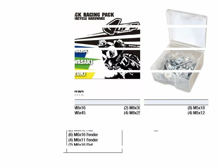 Contains an assortment of commonly used bolts, screws, washers and clips that can save your track day,