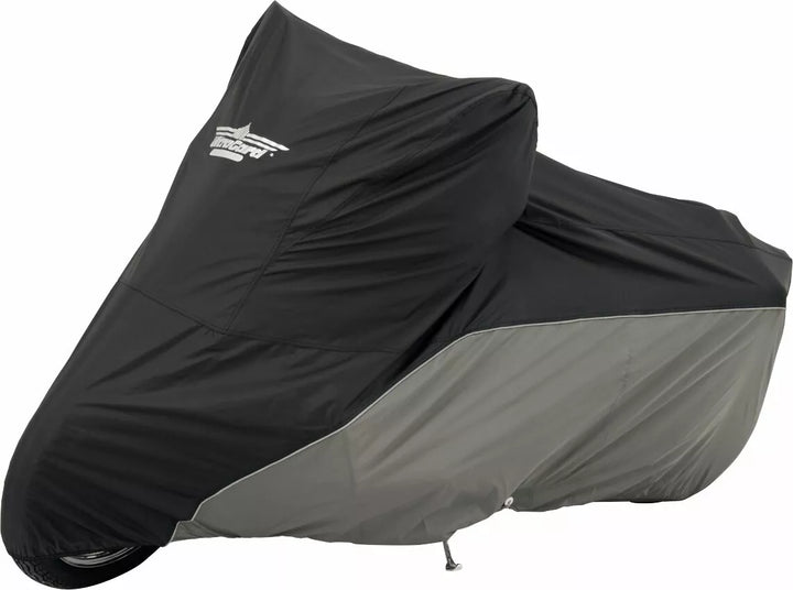 The Classic Series line of covers offers exceptional value without compromising the features you have come to expect from UltraGardᆴ., Tailor fit designs take into account the natural stance of your motorcycle., Water resistant polyurethane coated polyester, protects against weather, dirt and pollution., UV stabilized to maximize fabric lifeand minimize color fading from sun exposure., Scorch resistant heat shield protects the cover from hot exhaust pipes and allows use of cover immediately after riding., Double stitched, four fold interlocking seams to provide the best durability and water tight closure., SoftTek windshield liner to prevent scratching., Large rust-proof grommets prevent tearing., Sewn elastic hem and bungee cord ensures a tight custom fit., High visibility reflective logo adds safety while parked., Convenient and compact storage pouch is easily portable., Five year warranty.