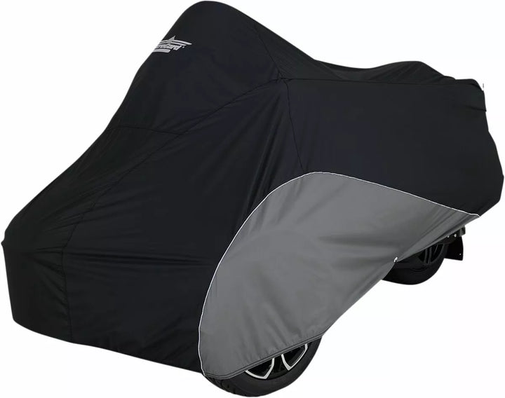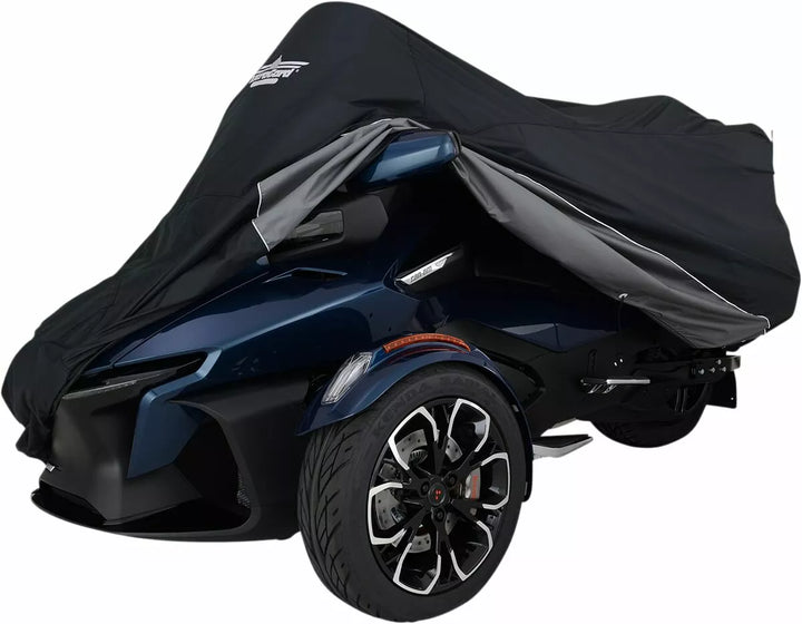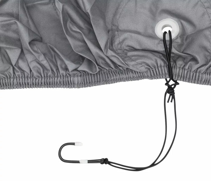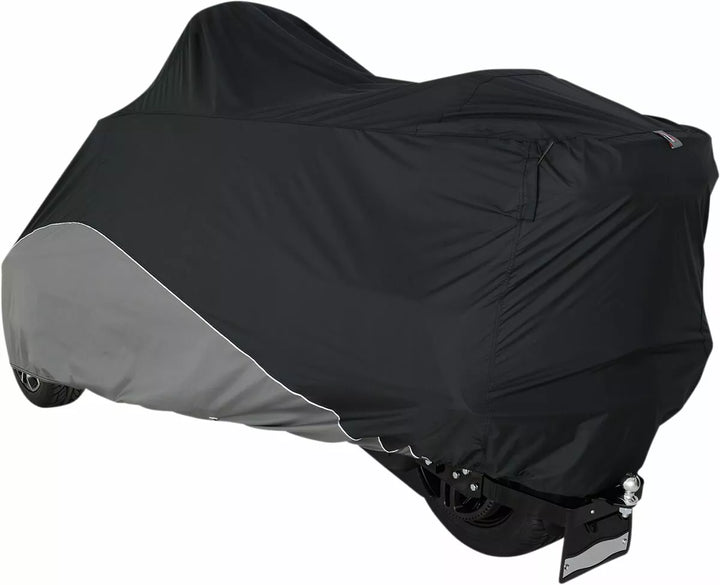 Tailored fit design, Water and weather resistant, UV stabilized to minimize color fading, Lightweight, polyurethane-coated polyester construction, Heat shield protects against hot exhaust pipes and allows immediate application of cover, Expandable windshield pouch, 5-year limited warranty