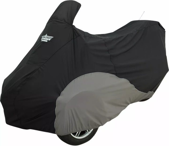 Tailored fit design, Water and weather resistant, UV stabilized to minimize color fading, Lightweight, polyurethane-coated polyester construction, Heat shield protects against hot exhaust pipes and allows immediate application of cover, Expandable windshield pouch, 5-year limited warranty