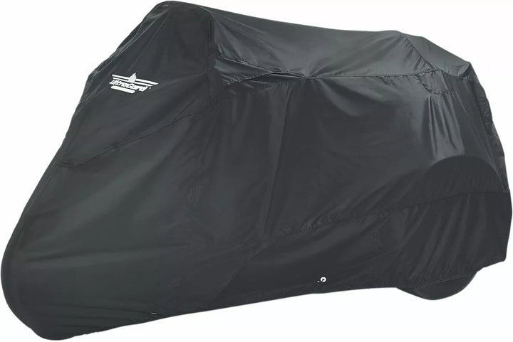 Water-resistant, lightweight, polyurethane-coated polyester construction, Elastic helm, SoftTek windshield protection, Ultragardᆴ vent system, Zippered storage pouch, Windshield liner, Rustproof, tie-down grommets, Bungee tie-down cords