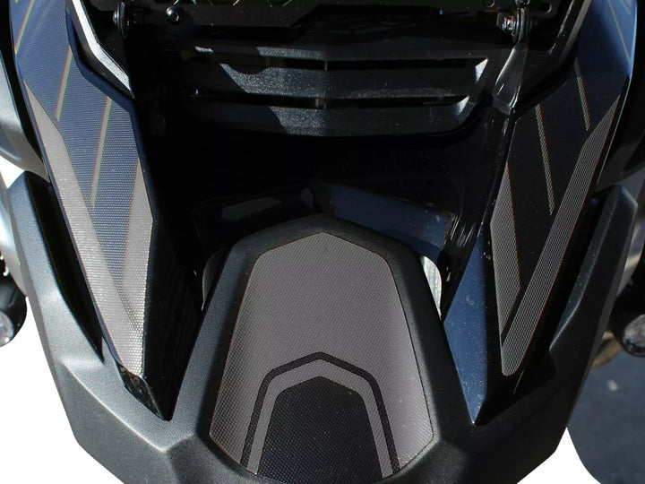 Set of resistant stickers that protect and decorate, The adhesives are made of a material with high resistance to rubbing and with an exclusive engraving that gives it a very attractive matte appearance, The kit is ready to assemble and can be mounted in the full range of colors of the motorcycle, The pieces that the kit contains are those expressed in the graphic