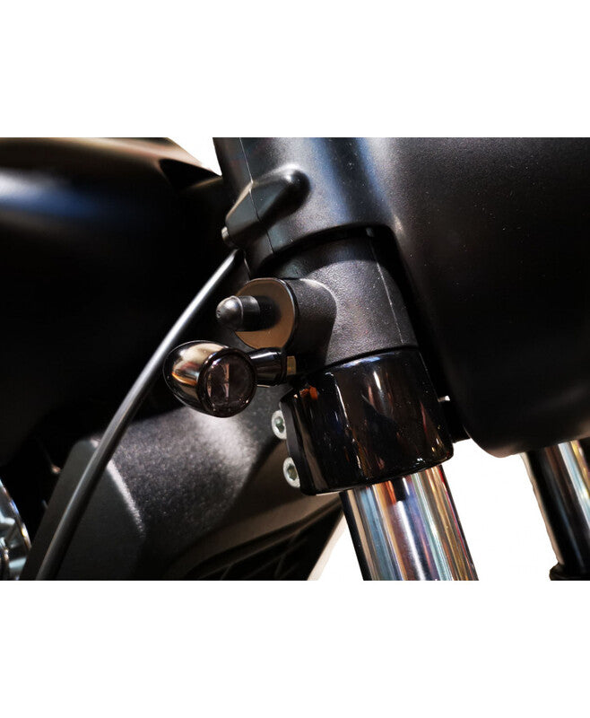 Med ett hål på 8,5 mm passar plattorna de flesta typer av blinkers eller bromsljus på stjälk. Kitet innehåller två delar, en för vardera sidan, perfekt formade för att matcha linjerna på din hoj.