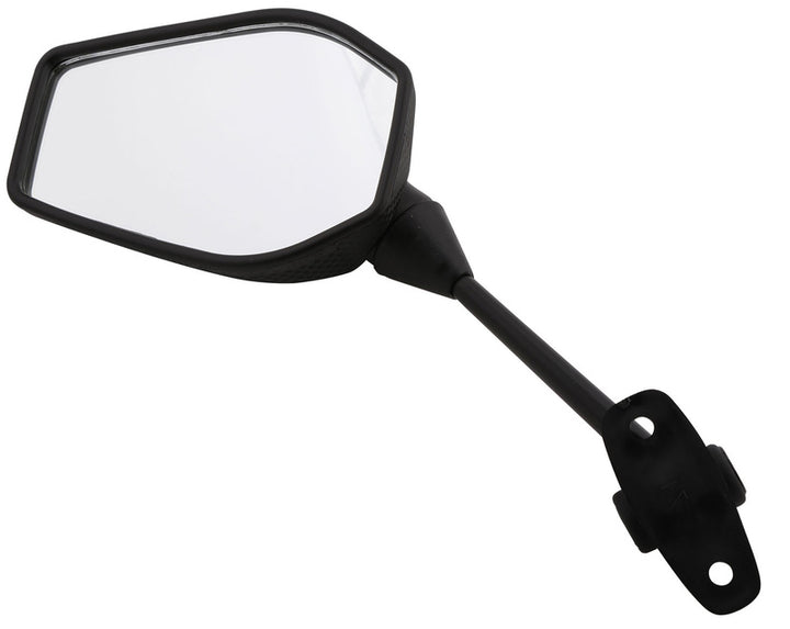 V-Parts offers both a wide range of universal mirrors and approved rear view mirrors which are specially developed for OE bike applications. Assembly: Fairing Color: Carbon Distance between bolts: 48 mm Fixing: Trous Homologation: CE homologated Includes turn signal: Non Material: Plastique Mirror height (mm): 90.0 Mirror width (mm): 138.0 Packing: à l'unité Position: Gauche Shape: Rectangle