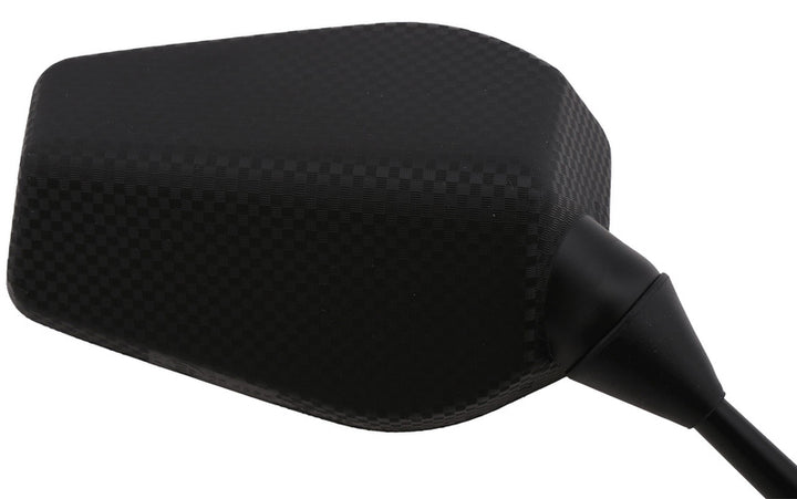 V-Parts offers both a wide range of universal mirrors and approved rear view mirrors which are specially developed for OE bike applications. Assembly: Fairing Color: Carbon Distance between bolts: 48 mm Fixing: Trous Homologation: CE homologated Includes turn signal: Non Material: Plastique Mirror height (mm): 90.0 Mirror width (mm): 105.0 Packing: à l'unité Position: Droite Shape: Rectangle