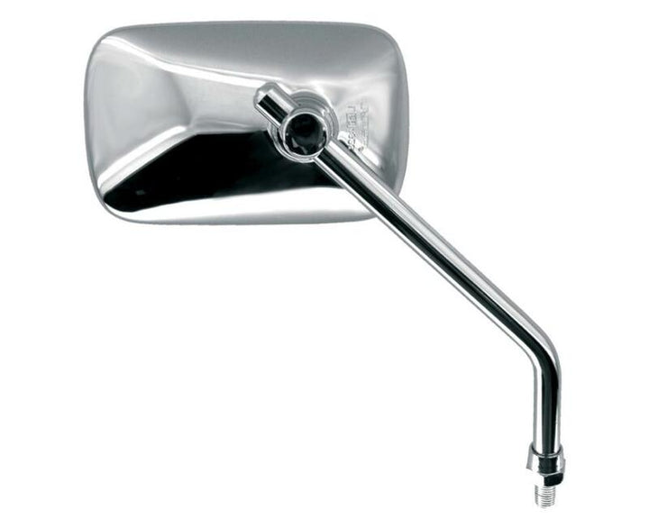 OEM type mirrorStreet legal Assembly: Handlebar Color: Chrome Fixing: Filetage Homologation: CE homologated Includes_turn_signal: Non Material: Plastique Mirror_height_mm: 90.0 Mirror_width_mm: 135.0 Packing: à l'unité Position: Droite Shape: Rectangle Thread_mm: M10 x 1.25 Thread_direction: Right