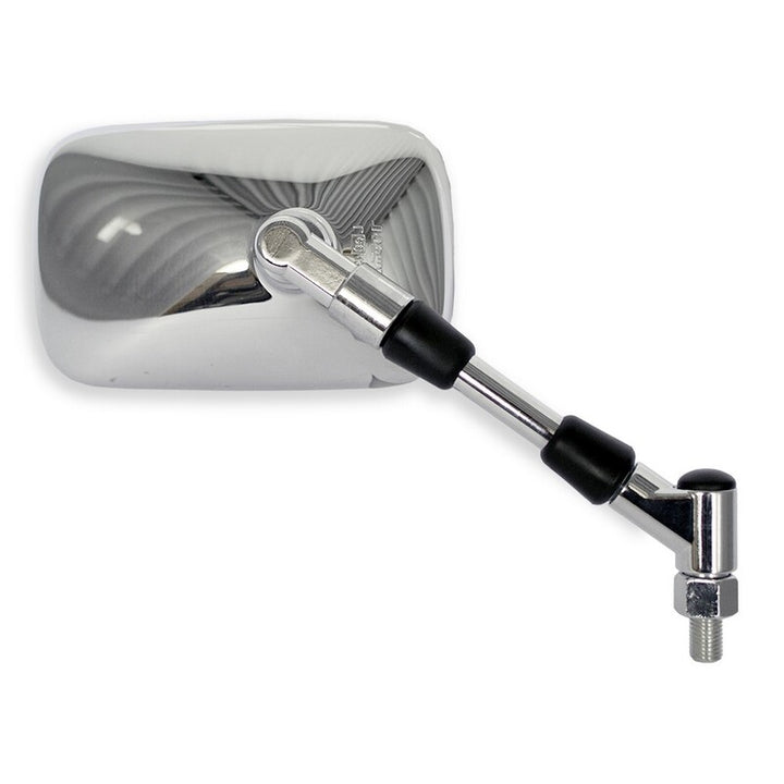 OEM type mirrorStreet legal Assembly: Handlebar Color: Chrome Fixing: Filetage Homologation: CE homologated Includes_turn_signal: Non Material: Plastique Mirror_height_mm: 90.0 Mirror_width_mm: 145.0 Packing: à l'unité Position: Droite Shape: Rectangle Thread_mm: M10 x 1.25 Thread_direction: Right