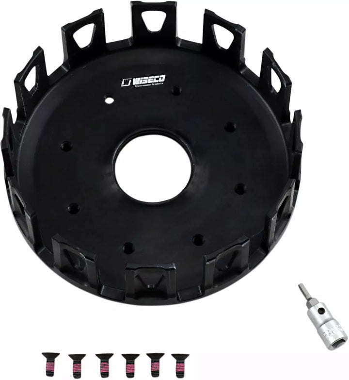 Forged from lightweight aerospace-grade aluminum alloy; CNC machining ensures each clutch basket is identical to the next, Weight-saving relief cuts on outside of clutch reduce rotational mass, allowing engine to rev quicker, Large oiling holes increase lubrication and reduce heat buildup, PTFE coating makes for a near-frictionless surface, Come with fasteners complete with pre-applied thread locker