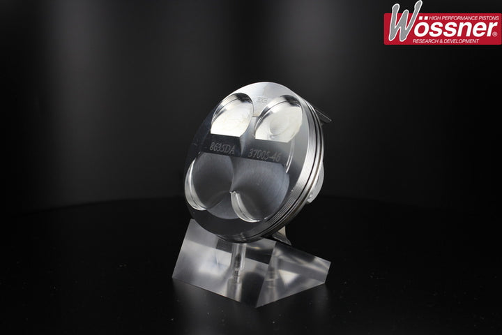 Wossner forged pistons are made in Germany by specialists of 2 and 4 strokes engine parts Forged pistonAnti friction coated skirtSupplied with required Ring(s), circlips and axis Bore_size: 77,00 Compression_Ratio: 13,5:1 Diameter: 76,96 Material: Aluminium Oversize: STD Piston_type: Forgé Rings_Quantity: 2 Stroke: 2T