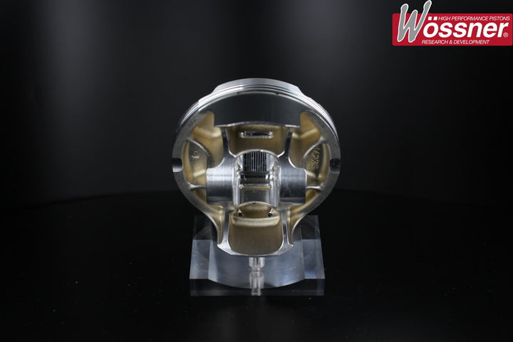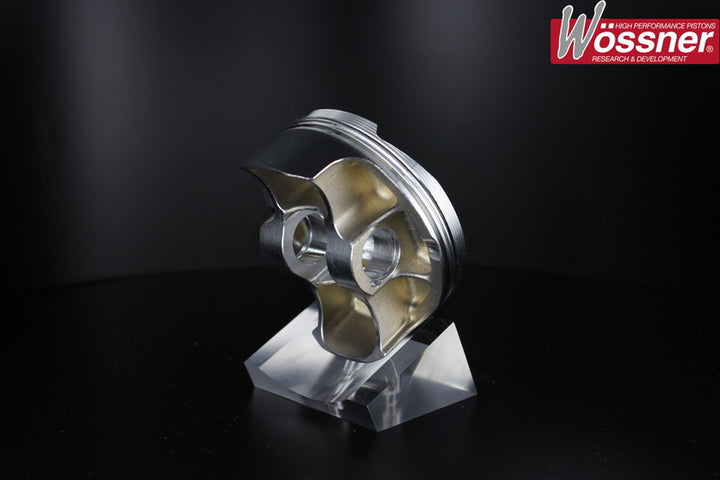 Wossner forged pistons are made in Germany by specialists of 2 and 4 strokes engine parts Forged pistonAnti friction coated skirtSupplied with required Ring(s), circlips and axis Bore_size: 76,01 Compression_Ratio: 12,9:1 Diameter: 75,97 Material: Aluminium Oversize: +0,01 Piston_type: Forgé Rings_Quantity: 2 Specificity: Double Bridge Forging Stroke: 4T
