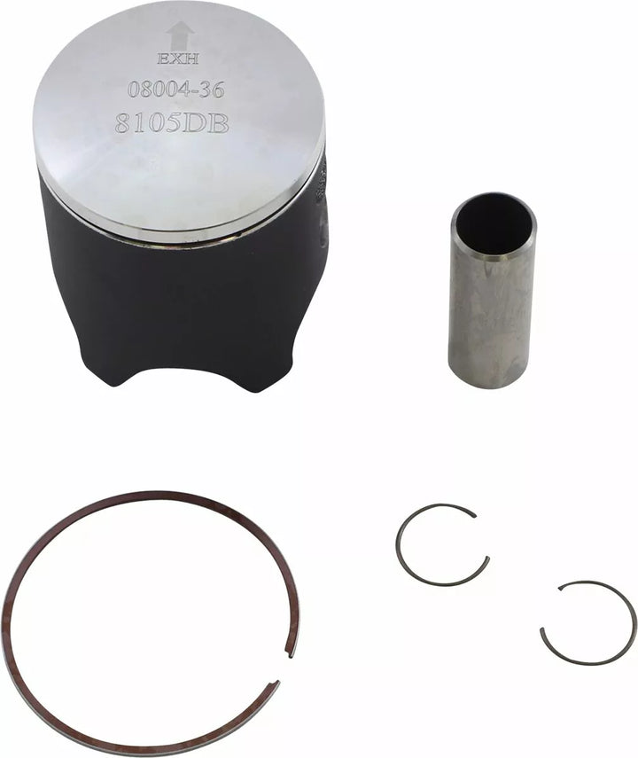 Pistons made are with high quality, permanent skirt coating to reduce friction and piston rock for quiet and improved performance, Optimized machining for lightness, as well as maintained strength in key areas such as crown and skirt wall cross section, Forged from aerospace grade aluminum alloy, Piston kit includes piston, rings, pin and clips