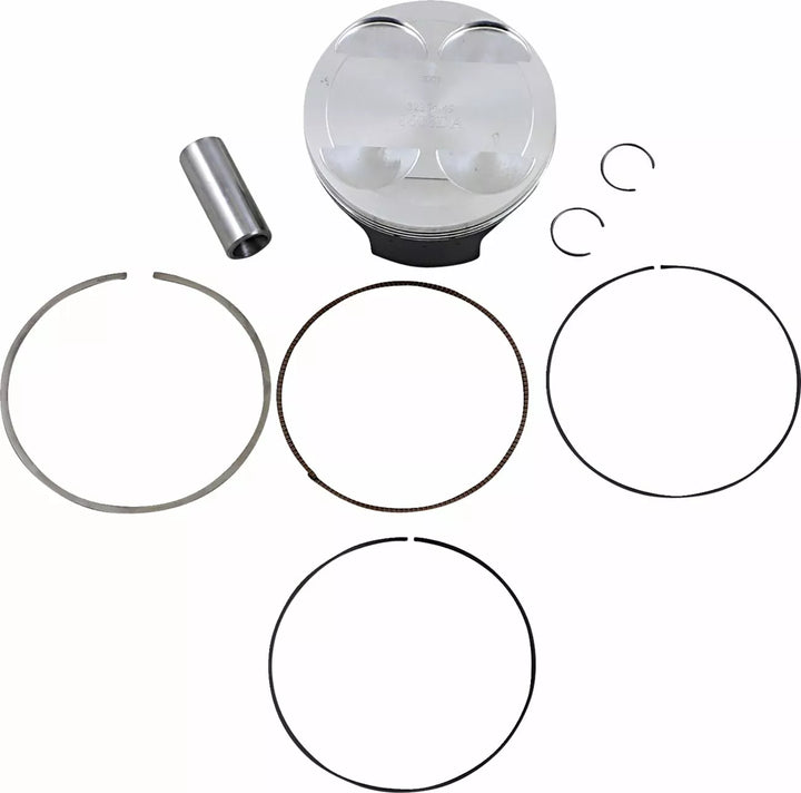 Enhanced piston pin oiling slots, radial boss machining, and annular grooves for improved wrist pin lubrication, Lightweight piston with a tight piston wall clearance for a quieter running engine, Skirt coated for reduced friction and improved break in performance, Ring land treatment for improved ring seal and oil control, Double bridged forging design where noted, Kit includes piston, rings, wrist pin and pin locks