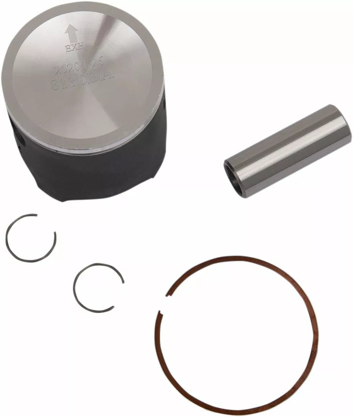 Pistons made are with high quality, permanent skirt coating to reduce friction and piston rock for quiet and improved performance, Optimized machining for lightness, as well as maintained strength in key areas such as crown and skirt wall cross section, Forged from aerospace grade aluminum alloy, Piston kit includes piston, rings, pin and clips
