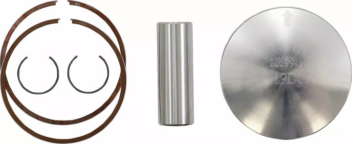 Pistons made are with high quality, permanent skirt coating to reduce friction and piston rock for quiet and improved performance, Optimized machining for lightness, as well as maintained strength in key areas such as crown and skirt wall cross section, Forged from aerospace grade aluminum alloy, Piston kit includes piston, rings, pin and clips