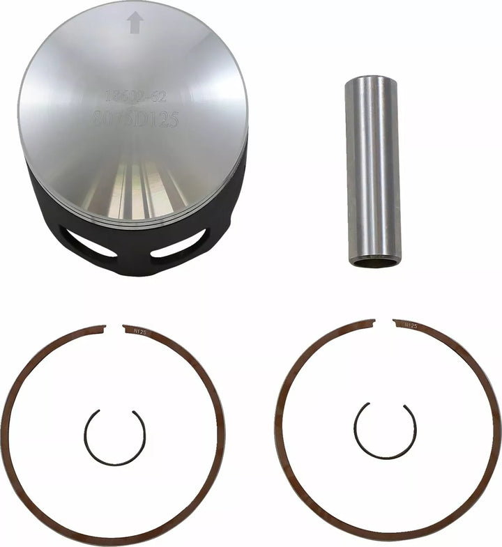 Pistons made are with high quality, permanent skirt coating to reduce friction and piston rock for quiet and improved performance, Optimized machining for lightness, as well as maintained strength in key areas such as crown and skirt wall cross section, Forged from aerospace grade aluminum alloy, Piston kit includes piston, rings, pin and clips