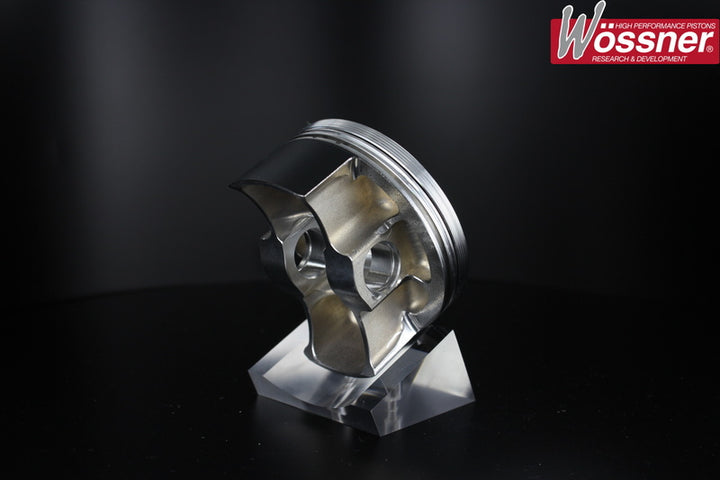 Wossner forged pistons are made in Germany by specialists of 2 and 4 strokes engine parts Forged pistonAnti friction coated skirtSupplied with required Ring(s), circlips and axis Bore_size: 77,00 Compression_Ratio: 13,5:1 Diameter: 76,96 Material: Aluminium Oversize: STD Piston_compression: High compression Piston_type: Forgé Rings_Quantity: 2 Specificity: Double Bridge Forging / Gas Ported Stroke: 2T