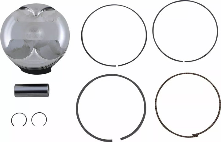 Enhanced piston pin oiling slots, radial boss machining, and annular grooves for improved wrist pin lubrication, Lightweight piston with a tight piston wall clearance for a quieter running engine, Skirt coated for reduced friction and improved break in performance, Ring land treatment for improved ring seal and oil control, Double bridged forging design where noted, Kit includes piston, rings, wrist pin and pin locks