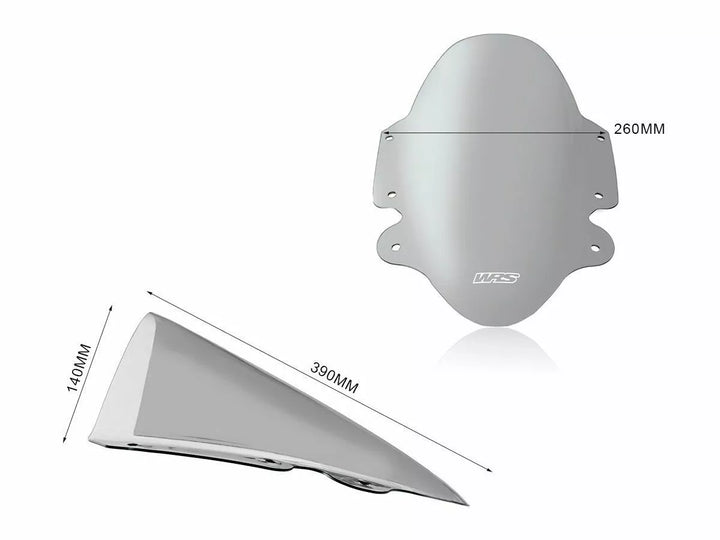 Windscreen made using high quality PMMA plexiglass., The annoying turbulence on the shoulders and helmet will be eliminated, The greater protection offered by the screen, Fits perfectly with the line of the bike, giving it an even more appealing look