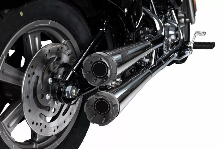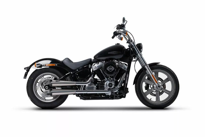 ZARD CONICAL SLIP-ON MUFFLER FOR HARLEY-DAVIDSON SOFTAIL M8, Slip-ons with aluminium end caps, Couple of Slip-Ons for the Harley-Davidson Softail Milwaukee-Eight range, Mufflers overlapping cone completely made of Aisi 304 stainless steel with exposed Mig welds, The black version is made by Cerakote painting, resistant up to 1000ᄚ, Choice of backplate: CNC machined from solid black or Avio stainless steel with hand-welded flanges with fine details, Available in mirror-polished and black versions, Choice of Racing or Euro4 and Euro 5 approved version