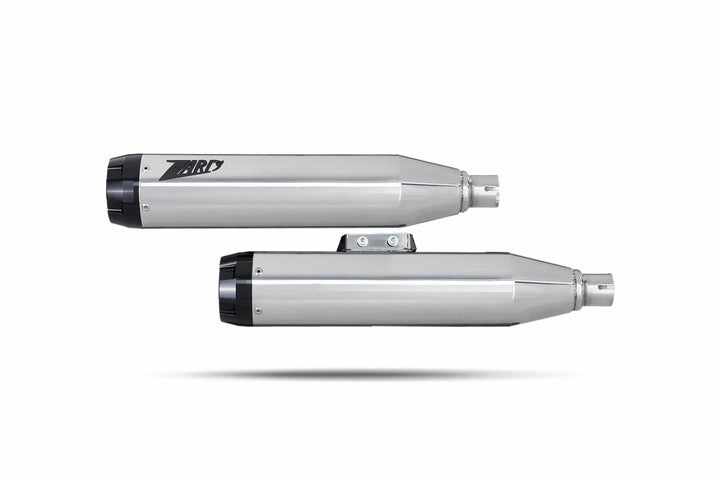 ZARD SLIP-ON MUFFLERS FOR HD SOFTAIL M8, Zard slip-ons overlapped for the Harley-Davidsonᆴ Softails, are designed to seamlessly integrate with the various configurations of the Cruiser lineup, Made from AISI 304 acciaio inox, these slip-ons are characterized by their compactness and a wide range of finishes that enhance the well-defined character of your cruiser, They are available in the following versions: satin-finished stainless steel with black anodized aluminum end caps, stainless steel with a matte black Cerakoteᆴ finish and black anodized aluminum end caps, polished stainless steel with black anodized aluminum end caps, Zard slip-ons for the Harley-Davidsonᆴ Softails are available in racing or Euro 4/5 Homologated version and come with the appropriate dB-Killers, The slip-ons are lightweight (-3,6 kg for the Euro 4/5 Homologated version compared to OEM slip-ons) ) and help to increase performance (+1,1 hp for the Euro 4/5 Homologated version), giving the bike the distinctive Zard sound