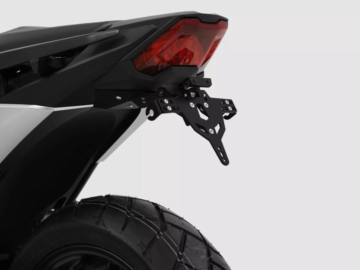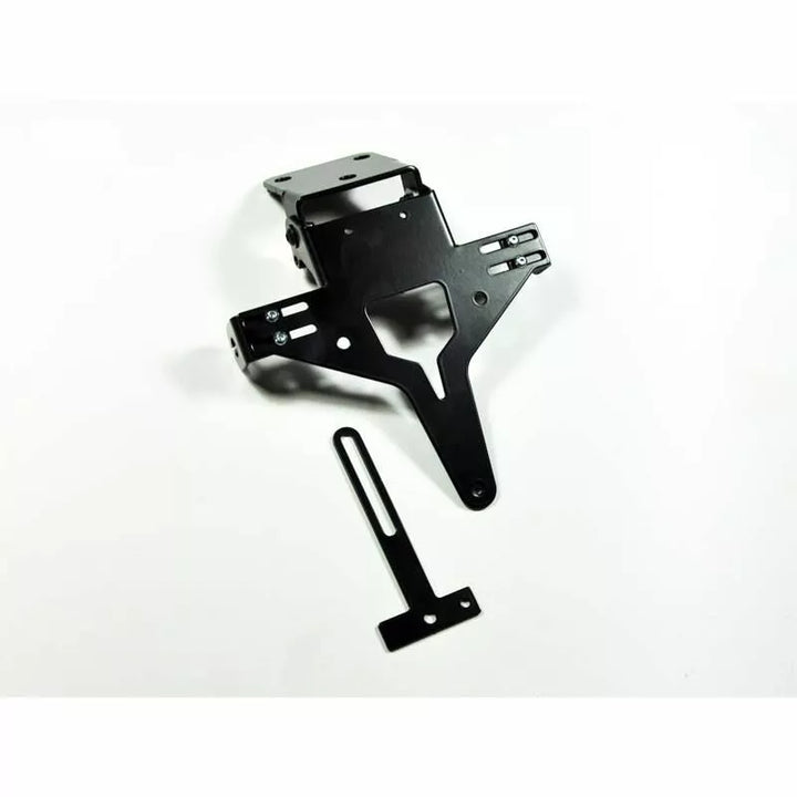 The license plate holder is extremely durable and weather proof., Black powder coated. , The license plate holder can be used for any kind of license plate (175mm Width)., No modification of fairing required., Stepless adjustment of rake angle., Indicator supports adjustable in 3 positions., Very good fit, sporty look., Countersunk bolts for flush mount of the license plate., Special indicator light mounts (sold separately) required for stock indicator lights., Kit includes:, 1 license plate holder incl. mounting kit., LED license plate light "E approved" incl. support., Back light with support., Type C (CH) fits the corresponding license plate sizes of: Switzerland, Poland and Ireland.