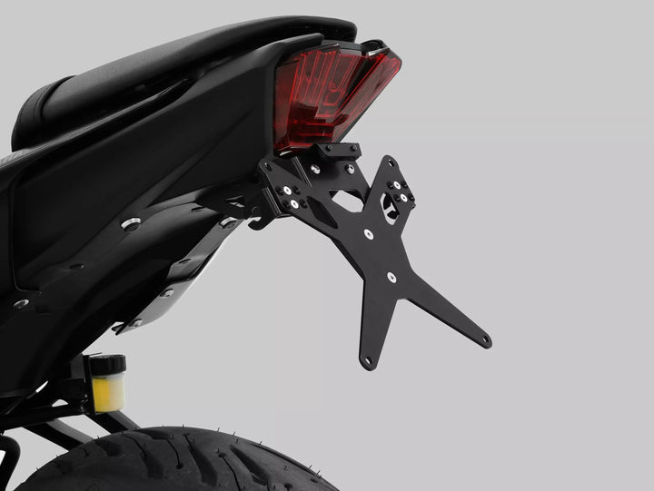 The license plate holder is extremely durable and weather proof., Black powder coated. , The license plate holder can be used for any kind of license plate (175mm Width)., No modification of fairing required., Stepless adjustment of rake angle., Indicator supports adjustable in 3 positions., Very good fit, sporty look., Countersunk bolts for flush mount of the license plate., Special indicator light mounts (sold separately) required for stock indicator lights., Kit includes:, 1 license plate holder incl. mounting kit., LED license plate light "E approved" incl. support., Back light with support., Type E fits Italian and German license plates., DISCLAIMER: Important: For the use of this license plate holder with the OEM turn signals of Ducati models (2015 - Present) a special holder is needed (Zieger Turn Signal Adapter OE Duc. Parts Europe Part Number: 20301971. Vendor Number: 10005790).