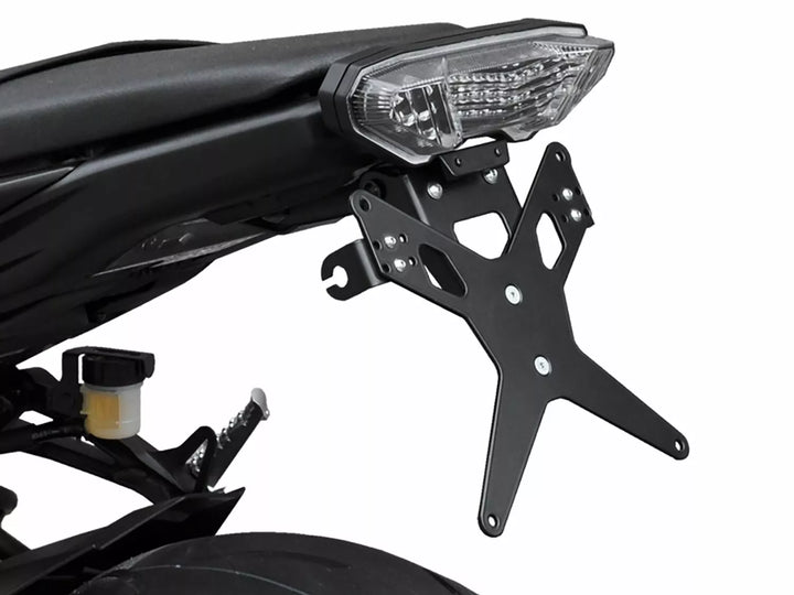 The license plate holder is extremely durable and weather proof., Black powder coated. , The license plate holder can be used for any kind of license plate (175mm Width)., No modification of fairing required., Stepless adjustment of rake angle., Indicator supports adjustable in 3 positions., Very good fit, sporty look., Countersunk bolts for flush mount of the license plate., Special indicator light mounts (sold separately) required for stock indicator lights., Kit includes:, 1 license plate holder incl. mounting kit., LED license plate light "E approved" incl. support., Back light with support., Type E fits Italian and German license plates., DISCLAIMER: Important: For the use of this license plate holder with the OEM turn signals of Ducati models (2015 - Present) a special holder is needed (Zieger Turn Signal Adapter OE Duc. Parts Europe Part Number: 20301971. Vendor Number: 10005790).