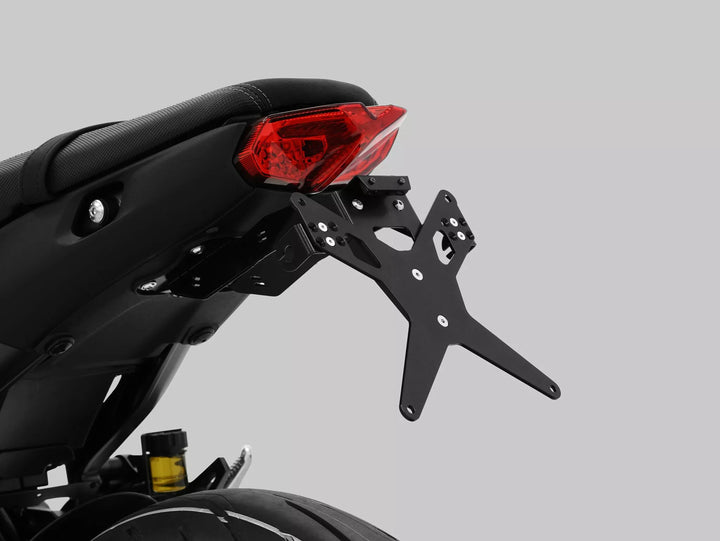 The license plate holder is extremely durable and weather proof., Black powder coated. , The license plate holder can be used for any kind of license plate (175mm Width)., No modification of fairing required., Stepless adjustment of rake angle., Indicator supports adjustable in 3 positions., Very good fit, sporty look., Countersunk bolts for flush mount of the license plate., Special indicator light mounts (sold separately) required for stock indicator lights., Kit includes:, 1 license plate holder incl. mounting kit., LED license plate light "E approved" incl. support., Back light with support., Type E fits Italian and German license plates., DISCLAIMER: Important: For the use of this license plate holder with the OEM turn signals of Ducati models (2015 - Present) a special holder is needed (Zieger Turn Signal Adapter OE Duc. Parts Europe Part Number: 20301971. Vendor Number: 10005790).