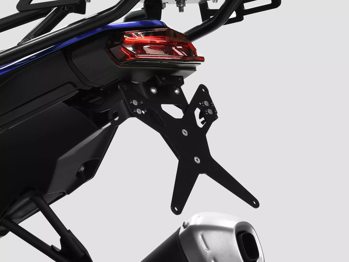 The license plate holder is extremely durable and weather proof., Black powder coated. , The license plate holder can be used for any kind of license plate (175mm Width)., No modification of fairing required., Stepless adjustment of rake angle., Indicator supports adjustable in 3 positions., Very good fit, sporty look., Countersunk bolts for flush mount of the license plate., Special indicator light mounts (sold separately) required for stock indicator lights., Kit includes:, 1 license plate holder incl. mounting kit., LED license plate light "E approved" incl. support., Back light with support., Type E fits Italian and German license plates., DISCLAIMER: Important: For the use of this license plate holder with the OEM turn signals of Ducati models (2015 - Present) a special holder is needed (Zieger Turn Signal Adapter OE Duc. Parts Europe Part Number: 20301971. Vendor Number: 10005790).