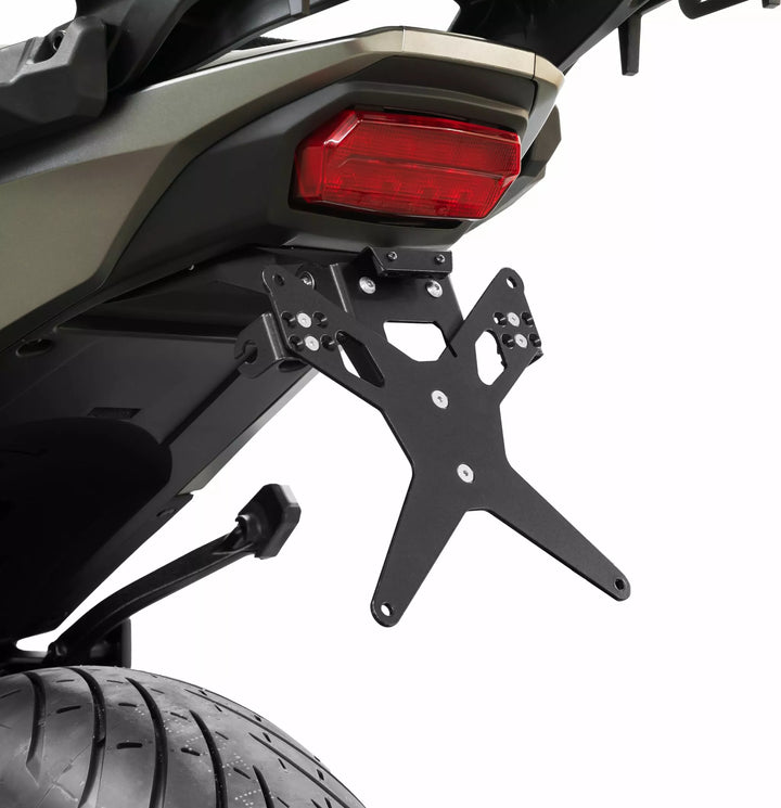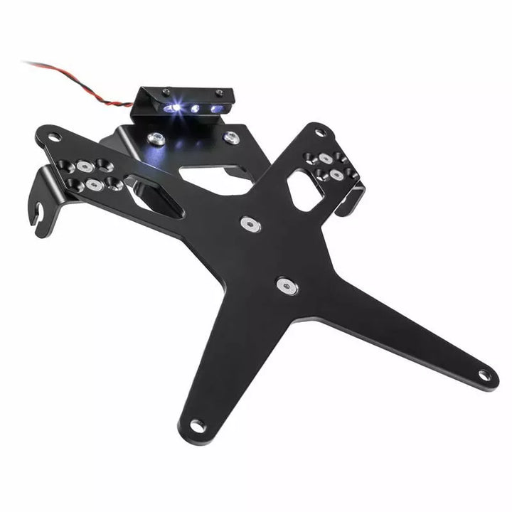 no cladding parts need to be changed, the license plate holder is suitable for every type of license plate (width 175 mm), black powder-coated, angle of inclination is fully adjustable, very good fit, sporty look, blinker holders are adjustable in 3 positions, the screw heads are additionally countersunk for a flat support of the license plate